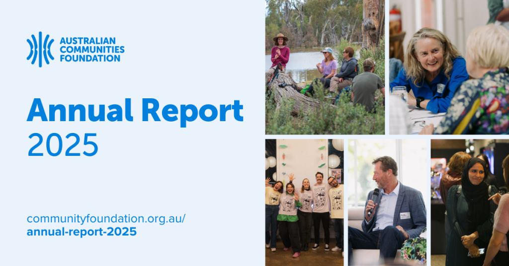 At Australian Communities Foundation, we help our giving community effectively support the causes they care about. Since 1997, we have distributed over 12,000 grants totalling $220+ million to communities across Australia and beyond.